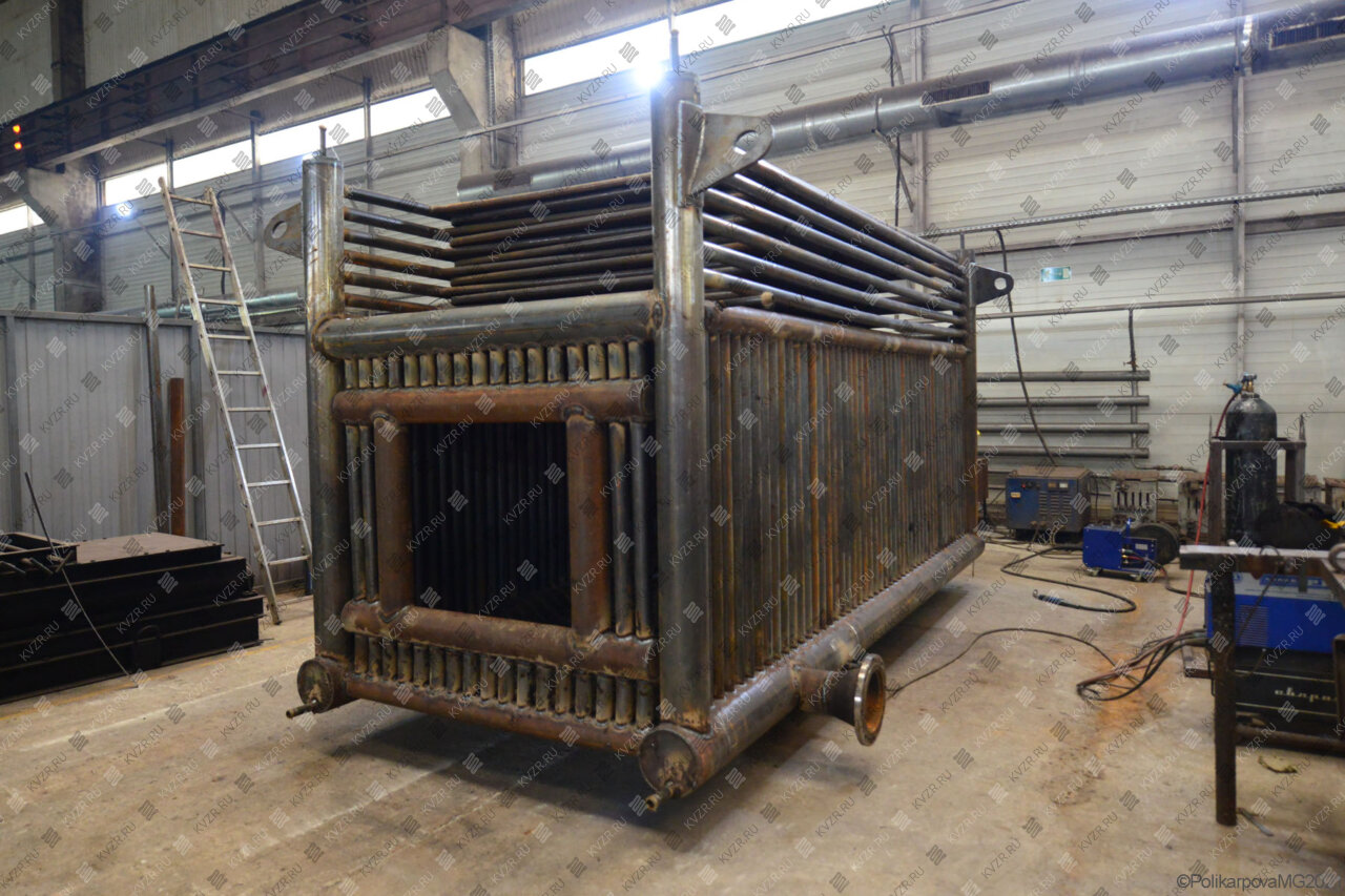 Все водогрейные котлы 0 47 МВт нашего производства - стальные, горизонтальные, водотрубные, прямоточные и компактные. Трубная часть котельного блока выполняется из труб различных диаметров, материал труб сталь 10 и 20. Блок снаружи обваривается стальной охлаждаемой полосой, поэтому в наших котлах исключена возможность задымления котельного зала. Снаружи на каркас из профильной трубы и швеллера крепится утеплитель и декоративная обшивка из полимерного листа. В обшивке предусмотрены лючки для очистки поверхностей нагрева.